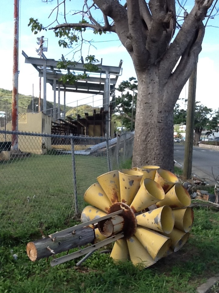 DOWN AND OUT: One of the 32 tsunami warning sirens territory-wide that is disconnected and not working. This one rests on the ground outside the fence at D.C. Canegata Ballpark in Estate Welcome, St. Croix. The Virgin Islands Territorial Emergency Management Agency (VITEMA) run by Mona Barnes has not announced plans to fix any of them to date.