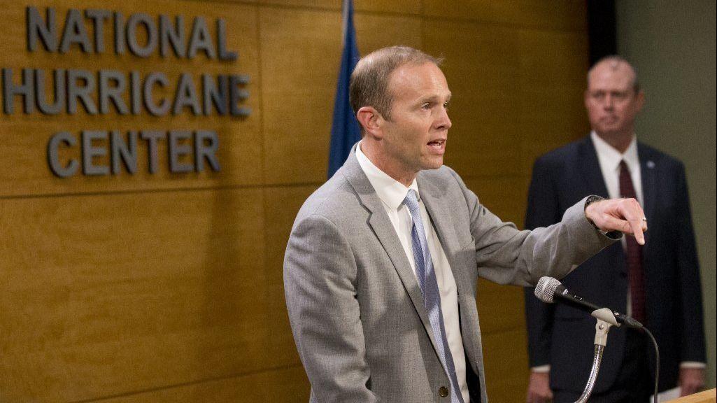Brock Long, head of the Federal Emergency Management Agency (FEMA), spoke at the National Hurricane Center in Miami.