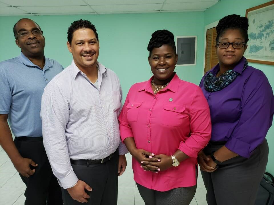 (From left) Richard Nicks, DPNR Commissioner nominee Jean-Pierre Oriol (second from left) with St. Croix Senator Allison Lisa DeGazon (pink blouse).