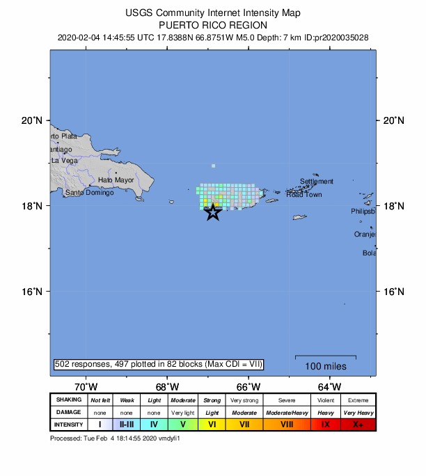 A moderate 5.0 magnitude earthquake also struck Guayanilla in southern Puerto Rico on January 25.