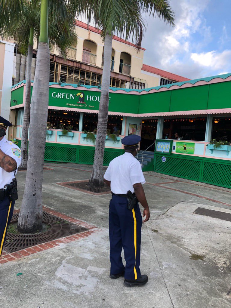 St. Thomas-St. John District Police Chief Steven Philip and Deputy Police Chief Ritchie Valazquez lead from the front last weekend, patrolling the Main Street and waterfront business district of St. Thomas and talking to store owners face-to-face.