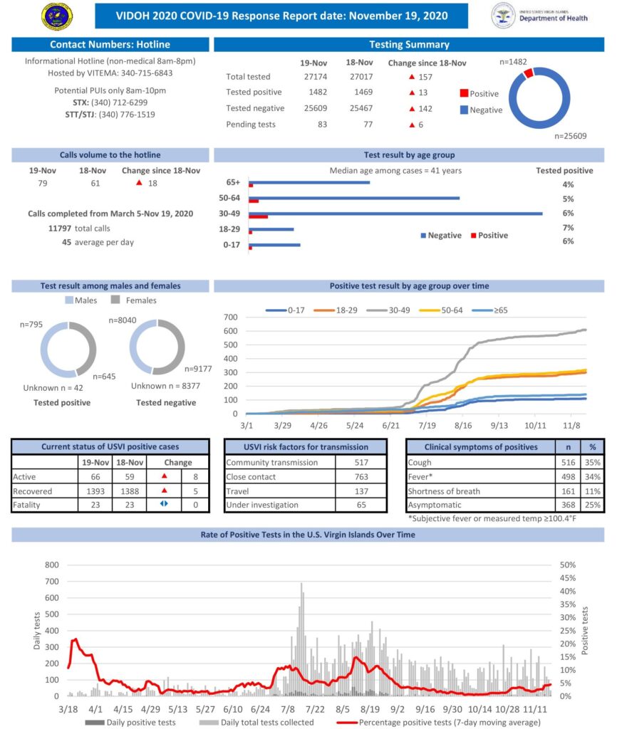 CHARLOTTE AMALIE — The Department of Health has reported 13 new confirmed cases of COVID-19 in its latest epidemiology report.