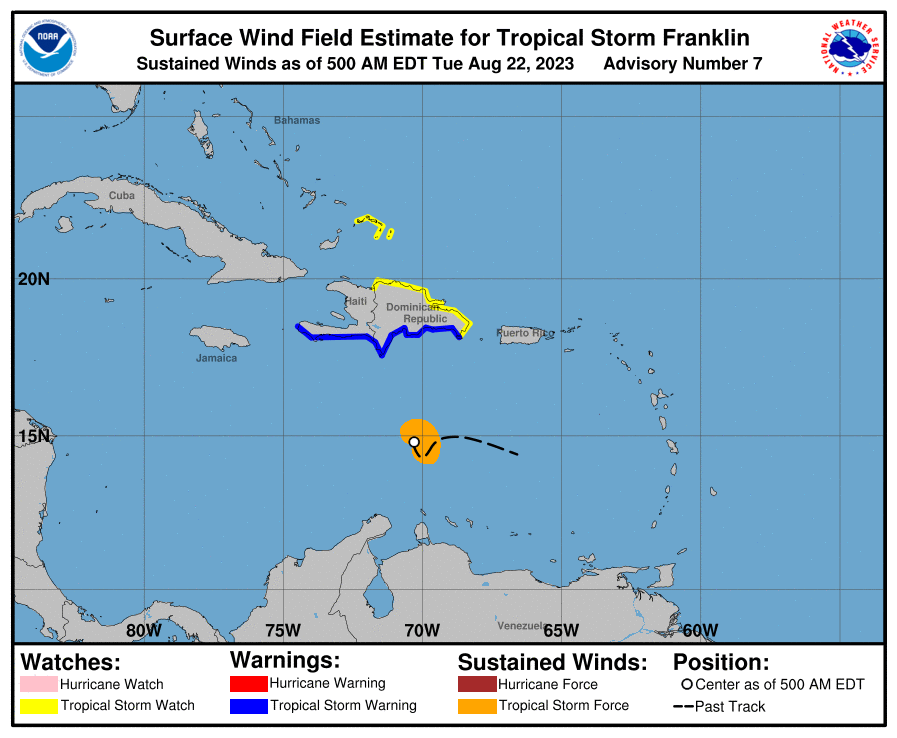 Franklin is also expected to bring storm conditions to parts of the Dominican Republic and Haiti on today.