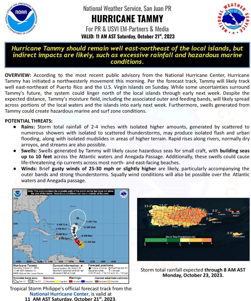 SAN JUAN — The National Hurricane Center is issuing advisories on Hurricane Tammy which is currently located just east of Martinique.