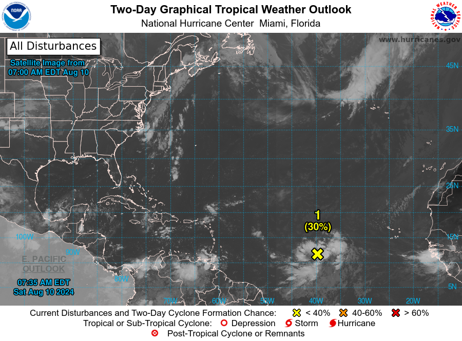 SAN JUAN — Shower and thunderstorm activity has increased since yesterday in association with a tropical wave located roughly midway between the Cabo Verde Islands and the Lesser Antilles.