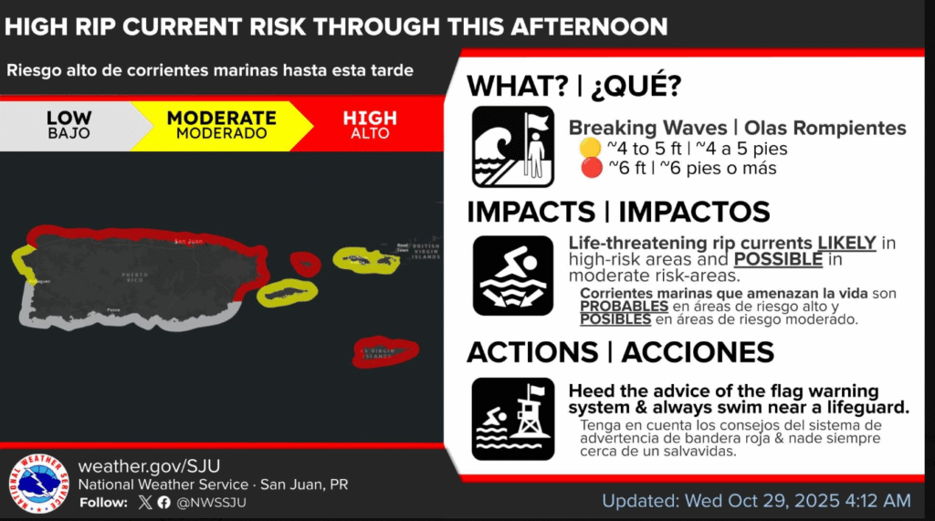 There is a high rip current risk through this afternoon for St. Croix, Culebra and the northern and eastern beaches of Puerto Rico.