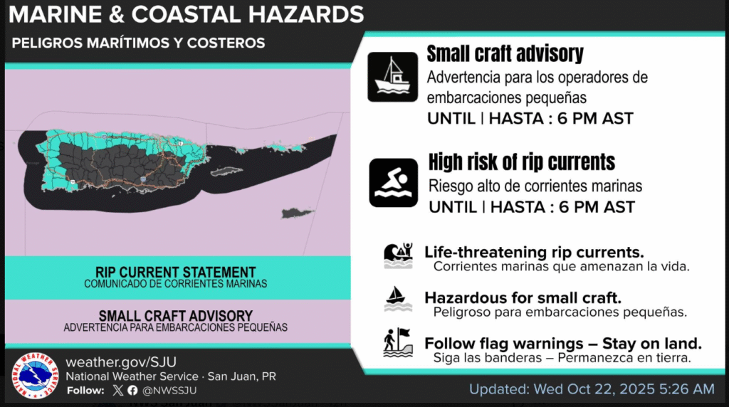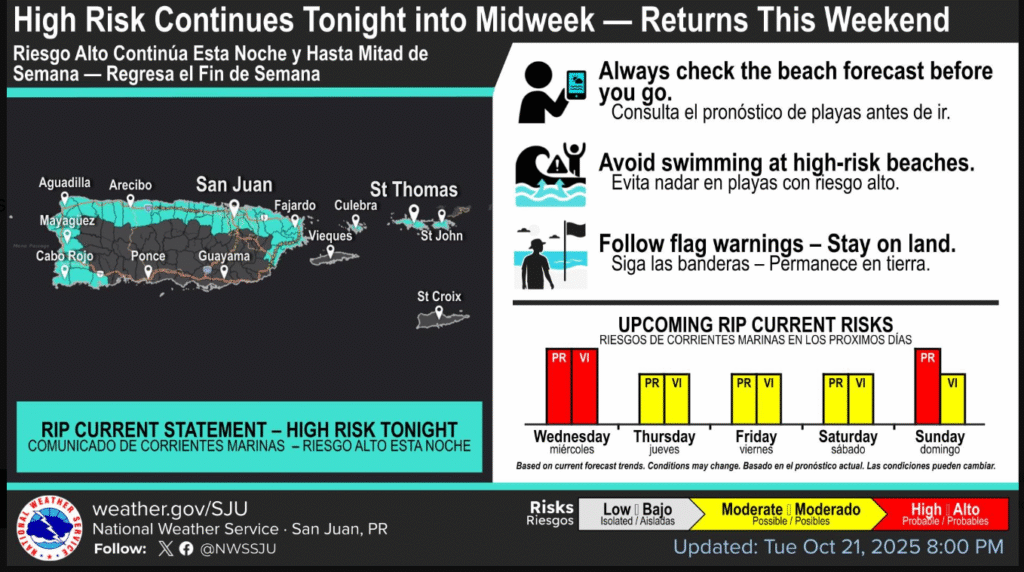 A High Rip Current Risk will also continue for the northern beaches of Puerto Rico, Culebra, and St. Thomas.