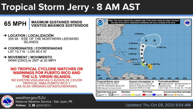 Hurricane Jerry will affect the Islands in our area tomorrow, the National Hurricane Center said.