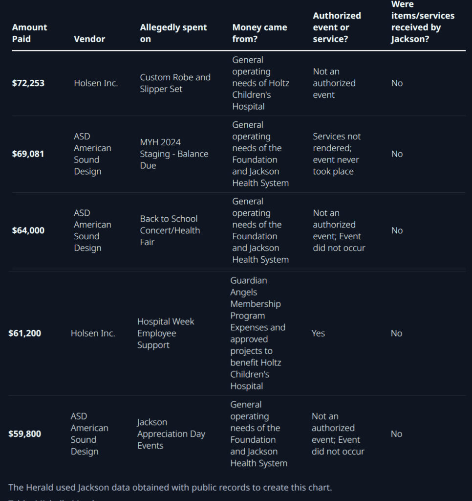 The Miami Herald reviewed thousands of pages of documents in this case, from federal court records to public records the Herald obtained through the Foundation and Jackson Health System, including hundreds of Gatlin’s invoices and emails.