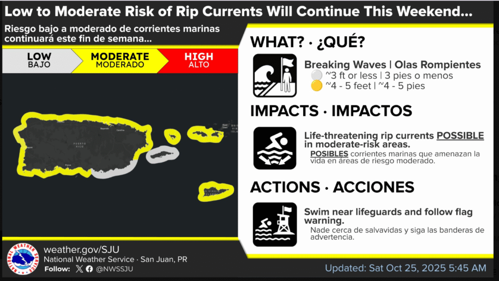 The risk of rip currents remains moderate for most beaches of PR and the USVI. If you plan to go to the beach, be aware of possible life-threatening rip currents over these areas.