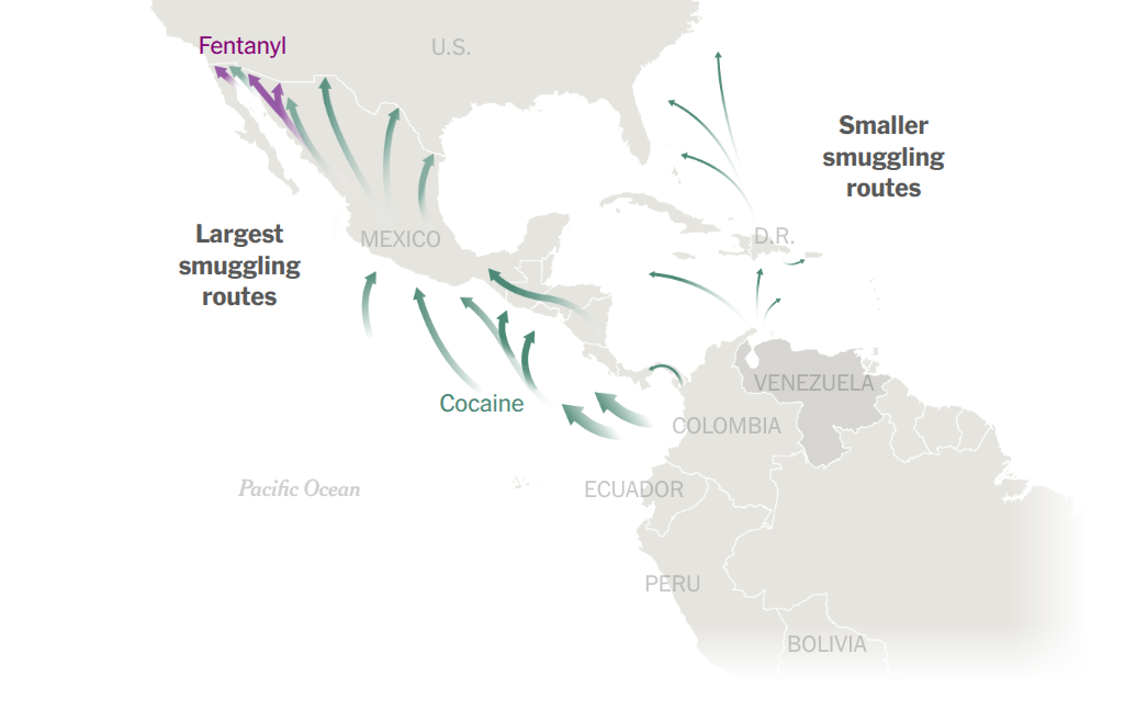 But Trump’s focus on Venezuela is at odds with reality: The vast majority of cocaine is produced and smuggled elsewhere in Latin America, according to data from the United States, Colombia and the United Nations. And Venezuela does not supply fentanyl at all, experts say.