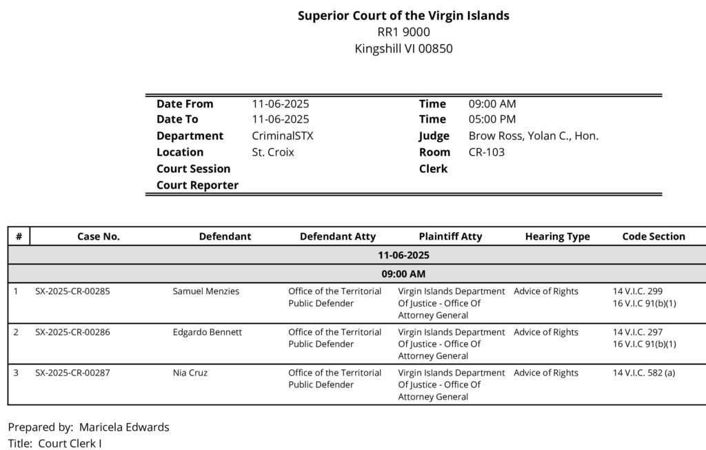 He was scheduled for an advice-of-rights hearing in Superior Court at Estate Kingshill this morning.