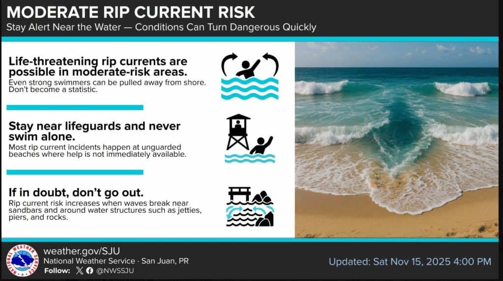 Life-threatening rip currents are possible in moderate-risk areas โ even strong swimmers can be pulled away from shore. Donโt become a statistic.