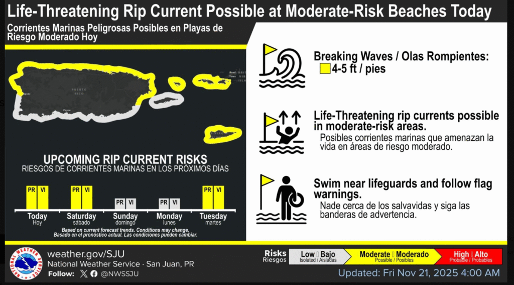 Breaking waves of 4â5 ft may create dangerous rip currents â even at moderate-risk beaches.![]()