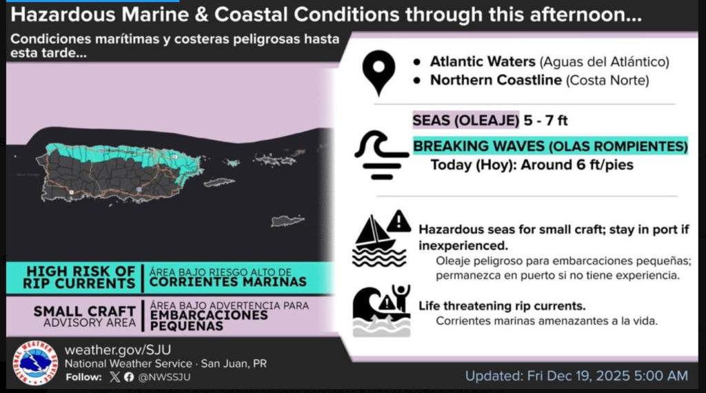 – Stable weather conditions most of the day, with a few localized showers during the afternoon across western Puerto Rico, according to the NWS.