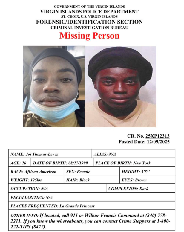 If you know Joi’s whereabouts please contact Crime Stoppers USVI at 1-800-222-8477.