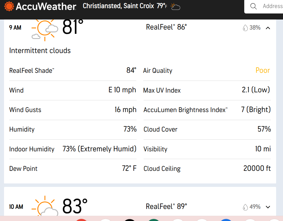 Today St. Croix will be breezy with a shower in our area this morning and a high of 87, AccuWeather said.