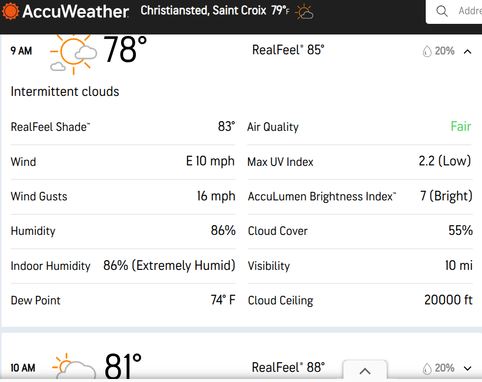 Today St. Croix will be partly sunny with a stray shower this afternoon and a high of 86, AccuWeather said.