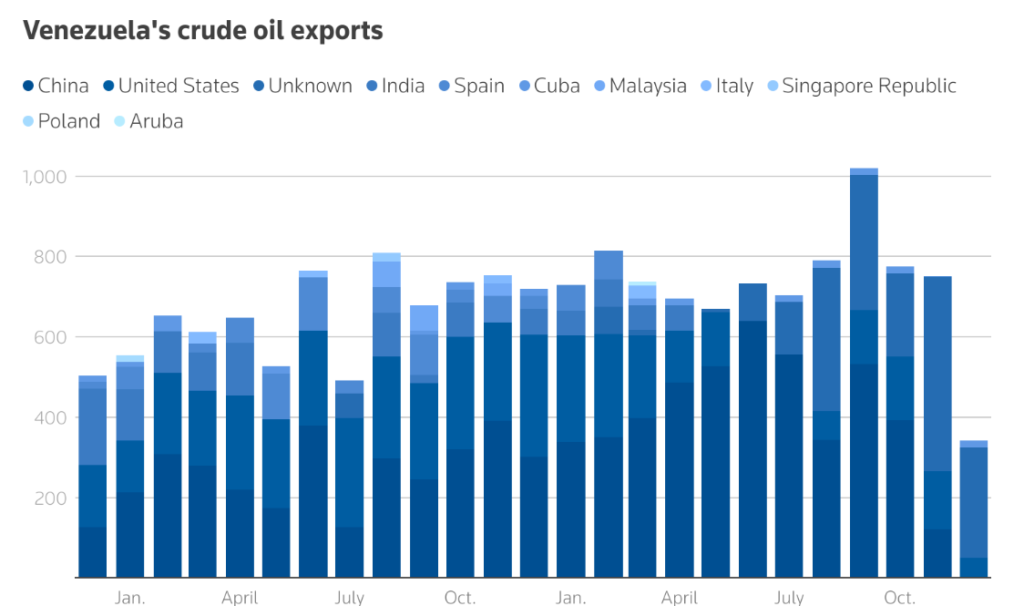 The country’s crude exports had spiked in September to over 1 million barrels per day, the highest since February 2019, likely because state-run oil company PDVSA was depleting inventories in anticipation of tightening restrictions.