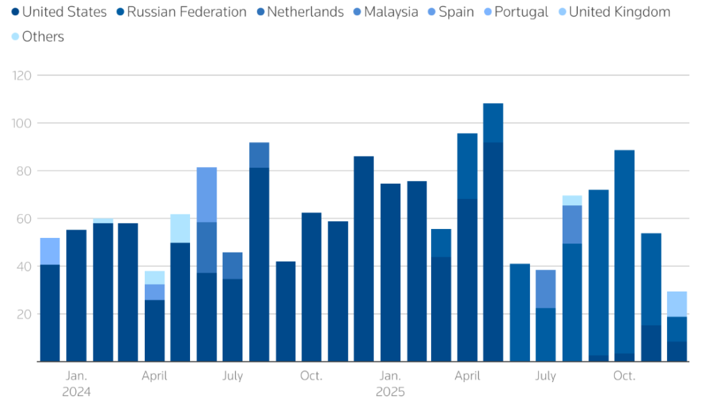 The U.S. is preparing to intercept more ships transporting Venezuelan oil, Reuters reported last Thursday, while Washington has also imposed new sanctions on Maduro’s family, six crude tankers and shipping companies linked to them.