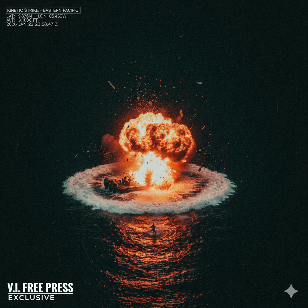 ST. THOMAS — The clock is ticking for a lone survivor spotted in the Eastern Pacific following Friday night’s lethal U.S. military strike. While SOUTHCOM has confirmed that two people were killed when their vessel was vaporized by a “kinetic strike,” the fate of a third individual remains a mystery.