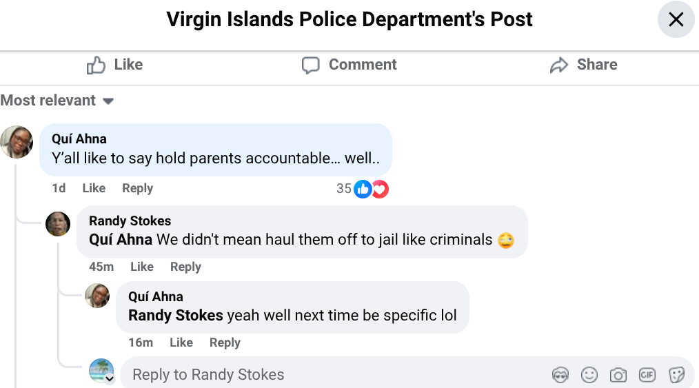 Nicole Hazel was arrested and charged with neglect of parental duty/ontributing to the delinquency of a minor and child neglect, the Virgin Islands Police Department said.