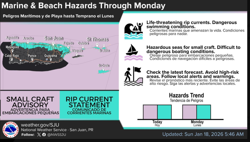 As seas build and affect the coast, a high risk of rip currents remains in effect until midnight tonight along most north- and east-facing beaches.