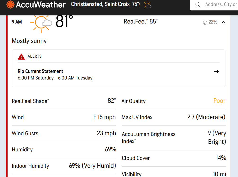 High risk of life-threatening rip currents continues today and tonight across the northern coastline of Puerto Rico, as well as over Culebra and the U.S. Virgin Islands, according to the NWS.