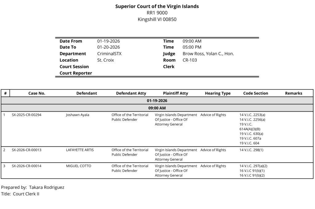 Artis’ bail was set at $1,000.00. He was scheduled for an advice-of-rights hearing in Superior Court at Estate Kingshill this morning.