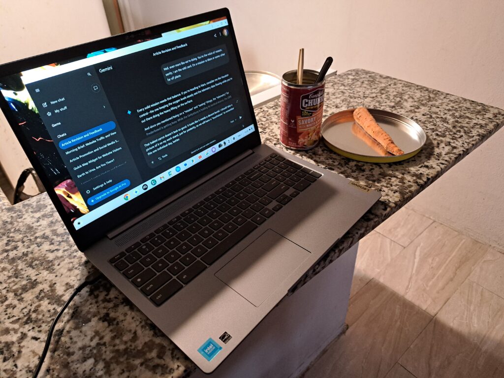 The writer’s “command post” in the kitchen on St. Croix.
