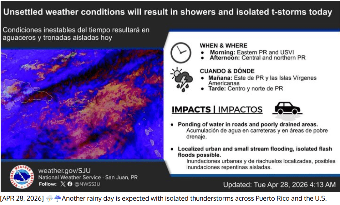 - Morning Timing: Showers and isolated thunderstorms are expected to increase in frequency across the U.S. Virgin Islands and eastern Puerto Rico through the morning hours.