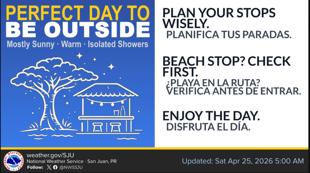 Posted onApril 25, 2026inAt VIFreep, Breaking News, Caribbean News, Puerto Rico News, St. Croix News, St. John News, St. Thomas News ST. CROIX FORECAST: A FINE WINDOW FOR OUTDOOR ACTIVITY BEFORE TROPICAL MOISTURE ARRIVES
