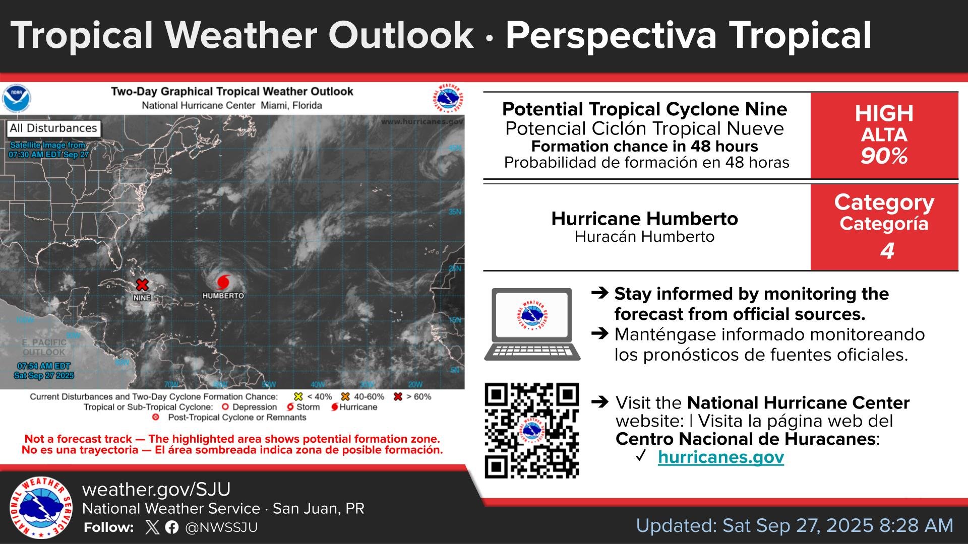 TROPICAL WEATHER OUTLOOK Tropical Depression Nine is expected to strengthen into a tropical storm early Sunday. Major Hurricane Humberto has rapidly strengthened into a Category 5 hurricane. Important: There is NO tropical threat to the…