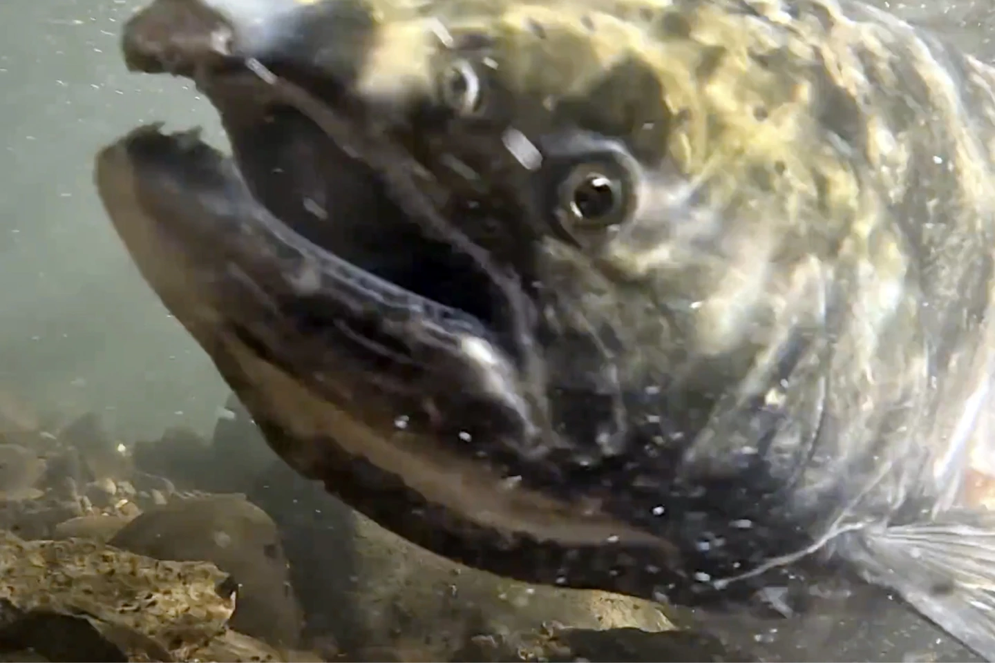 HAPPY CAMP, California (AP) — A giant female Chinook salmon flips on her side in the shallow water and wriggles wildly, using her tail to carve out a nest in the riverbed as her body…