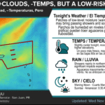 Partly sunny, breezy with a couple of afternoon showers, high 90