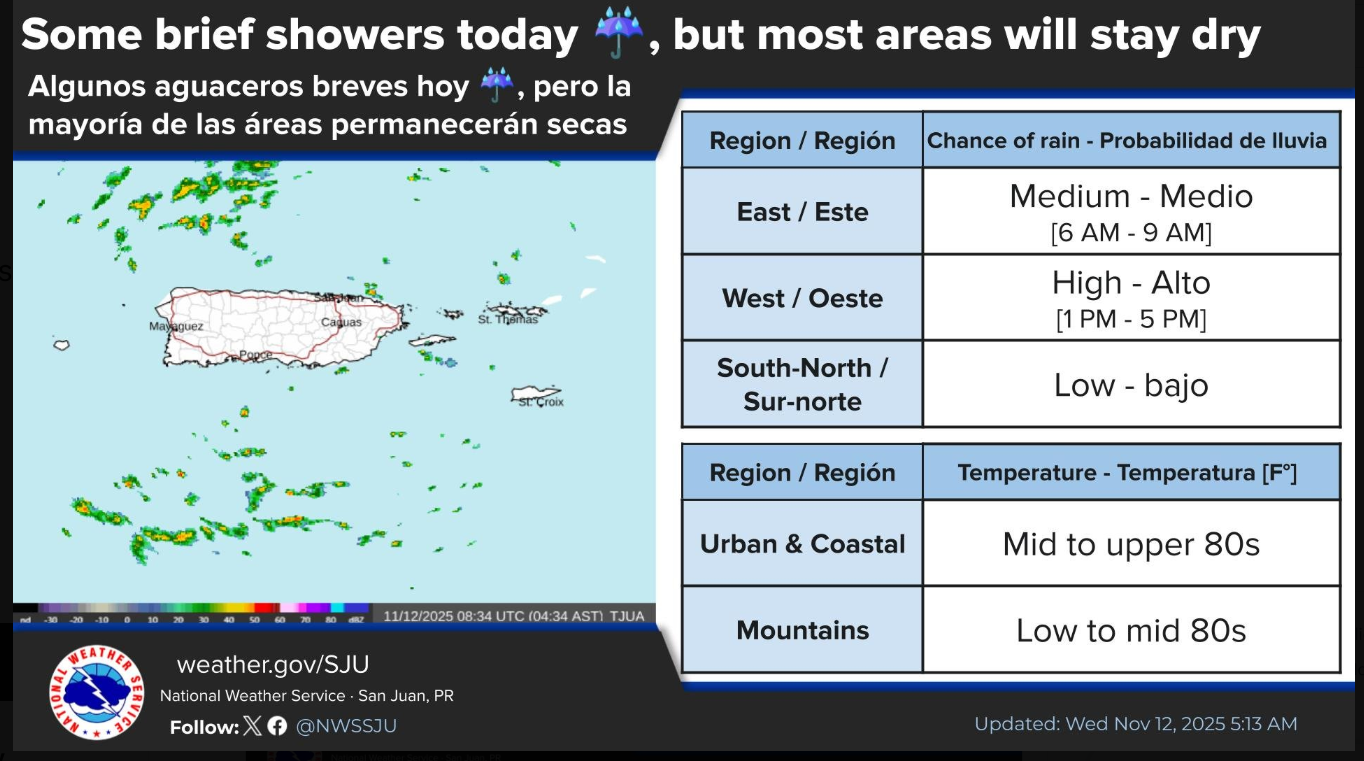 Mostly dry day ahead with a few brief showers around , the National Weather Service said. Temperatures will reach the mid to upper 80's across coastal and urban areas, and…